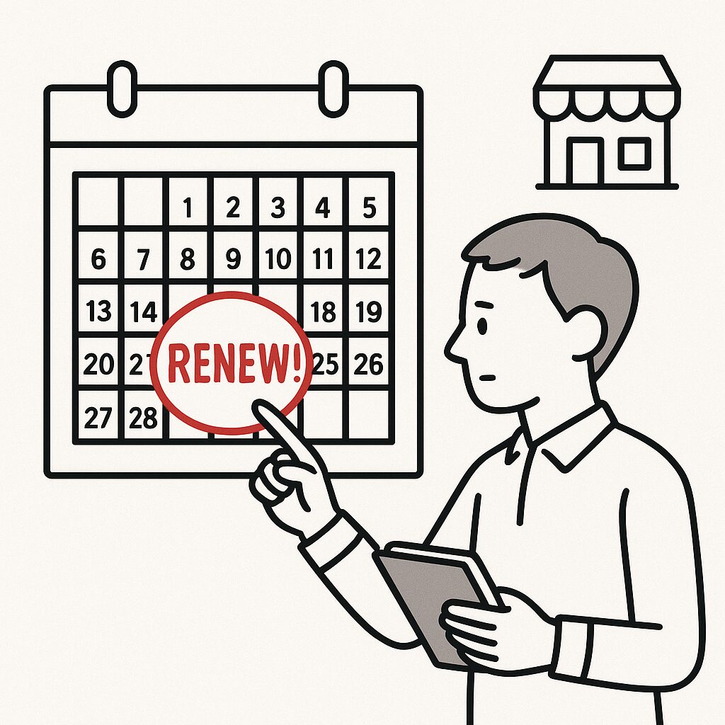 そして、これをうっかり忘れてしまうと、最悪の場合、「あれ?うちの店、知らないうちに無許可営業になってた!?」なんていう、恐ろしい事態に陥りかねません。